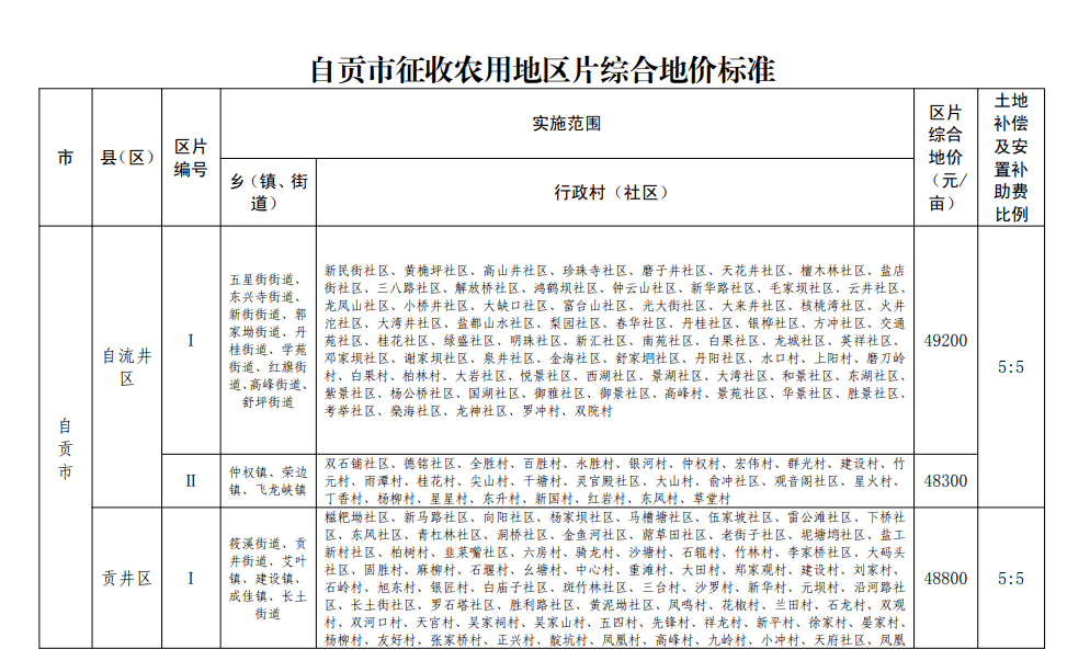 自贡最新征地补偿标准公布,补偿标准文件出炉
